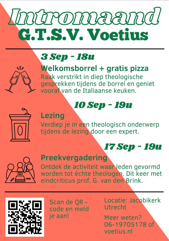 Overweeg je lid te worden van Voetius? Houd de socials in de gaten voor de activiteiten, van harte welkom die bij te wonen. We starten de woensdagavond om 18:00 met eten. 19:00 is er avondgebed in de Jacobikerk. 19:30-einde avond inhoudelijke activiteit met borrel. Alle activiteiten vinden plaats in de Jacobikerk in Utrecht.