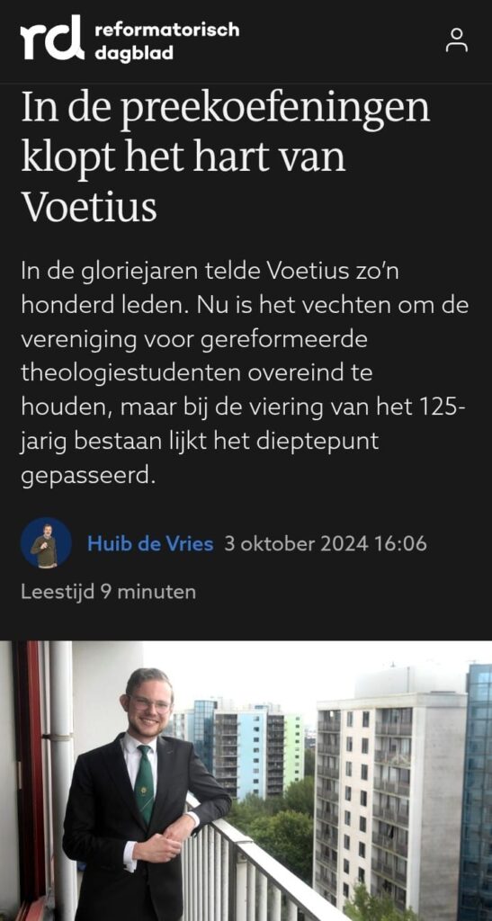 Praeses Ferdinand van der Mast en oud-Voetiaan prof. Gerrit Immink werden geïnterviewd door het Reformatorisch Dagblad in aanloop naar de viering van de 125e Dies Natalis van G.T.S.V. Voetius. Zie de volgende link voor het interview: https://www.rd.nl/artikel/1079793-in-de-preekoefeningen-klopt-het-hart-van-voetius